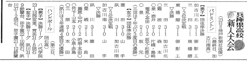 1991年兵庫県高校バドミントン新人大会団体戦・神戸新聞(平成3年11月24日)