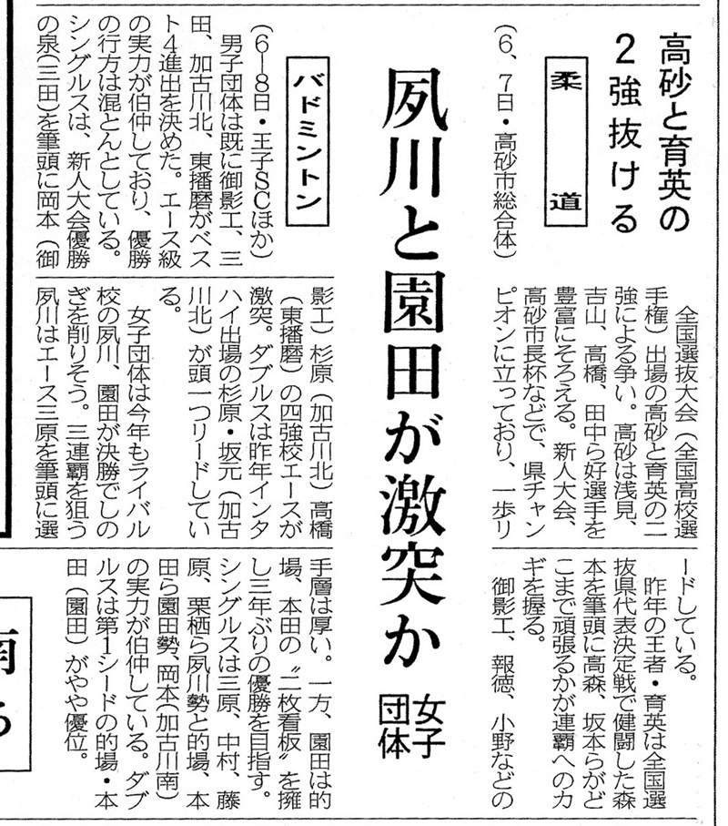 1992年兵庫県高校総体展望・神戸新聞(平成4年6月3日)