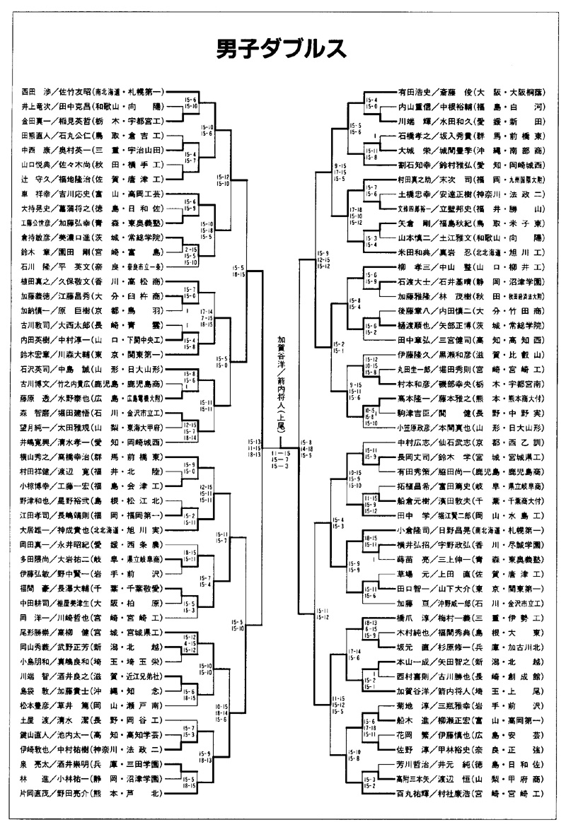 1992年(平成4年)全国高校総体バドミントン男子ダブルス結果
